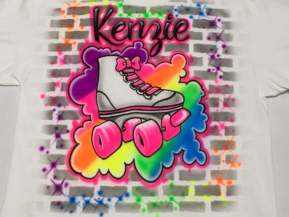 Airbrushed 80s 90s Throwback Roller Skate T Shirt Rainbow Name Etsy
